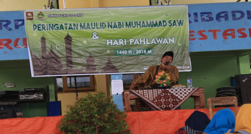 Senin (19/11/2018), SMK PGRI SOOKO memperingati MAULID NABI MUHAMMAD SAW, acara pertama yaitu ISTIGOSAH yang dipimpin oleh USTAD MANSUR selaku guru agama islam, yang dilanjutkan dengan ACARA TAUSIYAH yang dipimpin USTAD GUFRON selaku pembina ekstrakulikuler Banjari di SMK PGRI Sooko. Maulid nabi menjadi ajang pemersatu antar umat beragama yang ada di SMK PGRI Sooko yang mayoritas siswa dan siswi memeluk agama islam, acara peringatan maulid nabi diharapkan dapat membawa keberkahan bagi seluruh warga SMK PGRI Sooko. “Peringatan maulid nabi merupakan momen kelahiran, keagungan dan keteladanan Nabi Muhammad SAW” kata Ustad Gufron dalam tausiah yang disampaikan [DAVID]